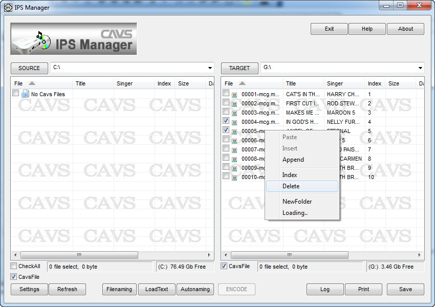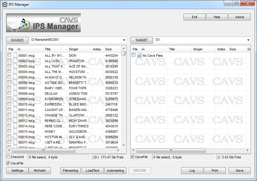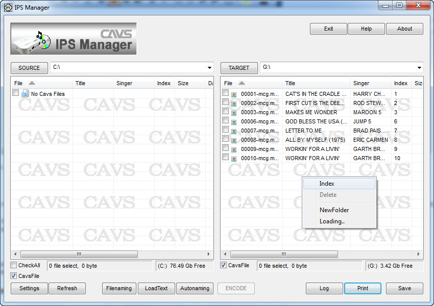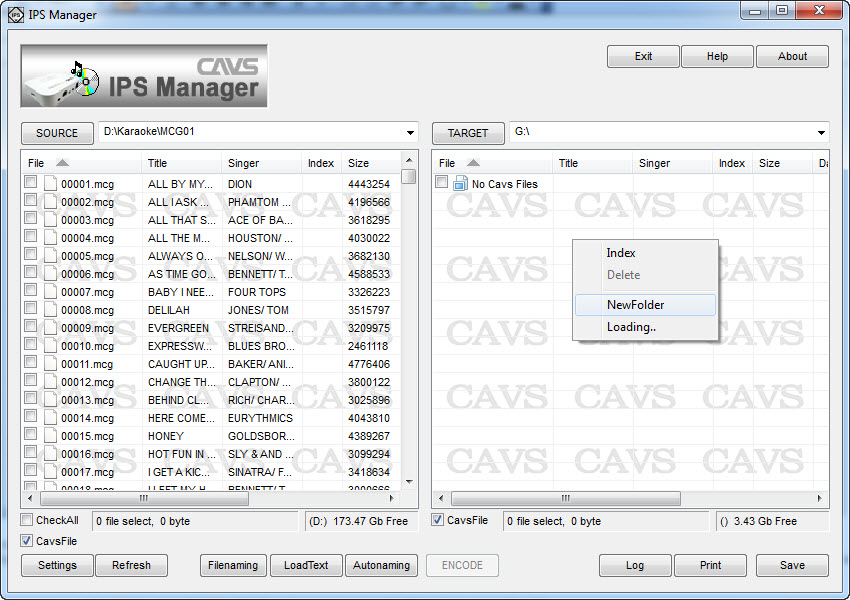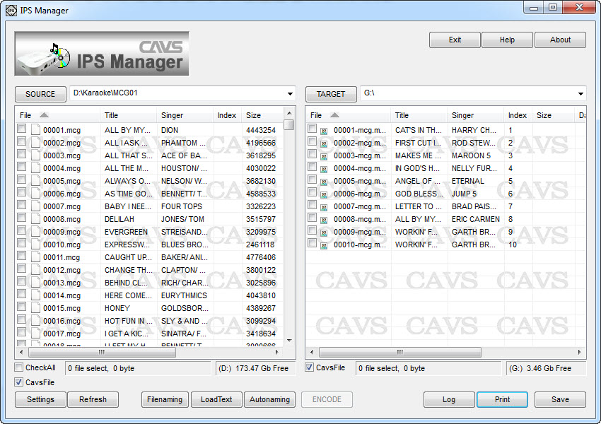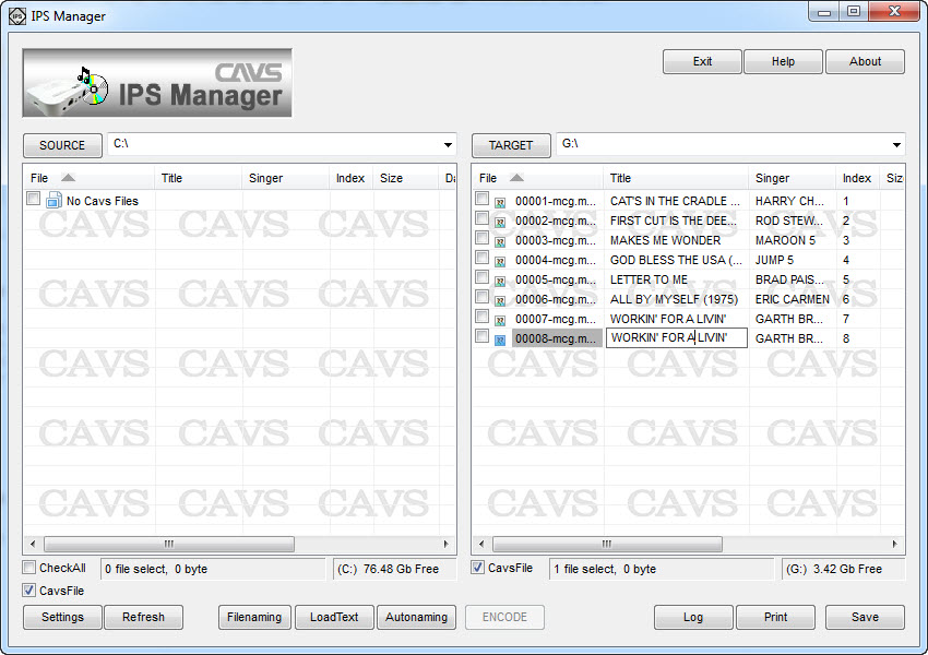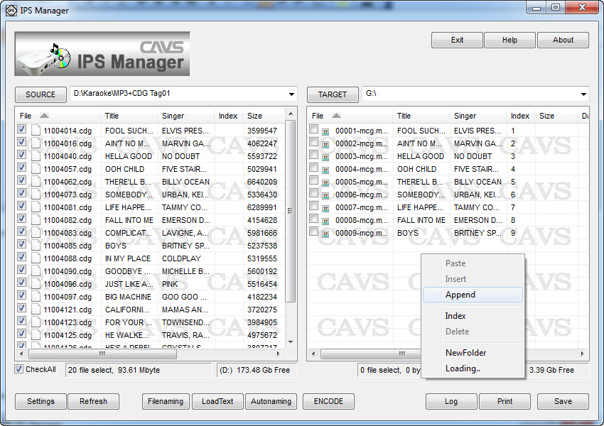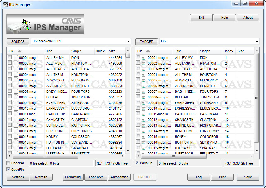 Here we show how to convert and transfer the song files of CDG+MP3, MP3+G, MCG+MP3, and NCG+MP3 formats which may come from CAVS DVD USB (105G USB, 203G USB, 305G USB), JB-199 (I, II) or PlayCDG KJ Deluxe 64 LT (CAVS Karaoke Laptop, Touch Screen, All-In-One) players into the USB memory device using the IPS Manager program for play in IPS-11G player.