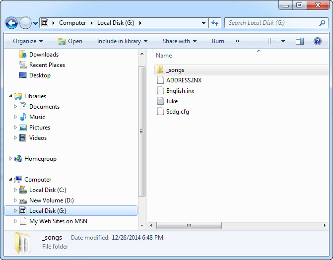3. Inserting the song files of the CDG+MCG, MP3+G, MCG+MP3,