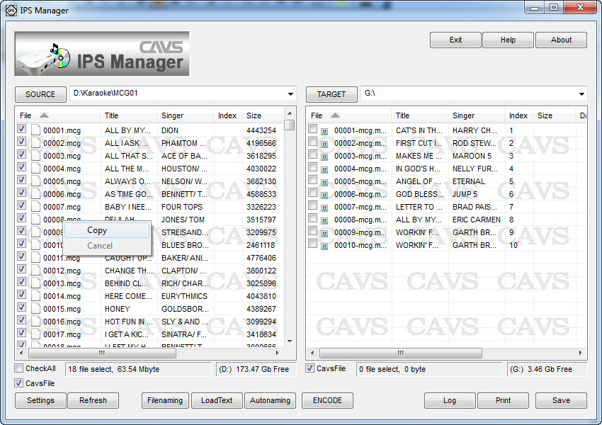 and NCG+MP3 formats (from CAVS DVD USB, JB-199 (I,II), or PlayCDG KJ Deluxe 64 LT