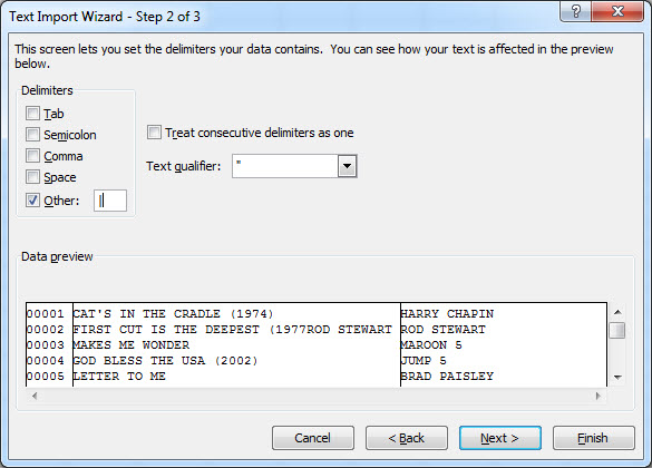 Each line represents a song and has Index, Title, and Artist name separated by "|" sign.