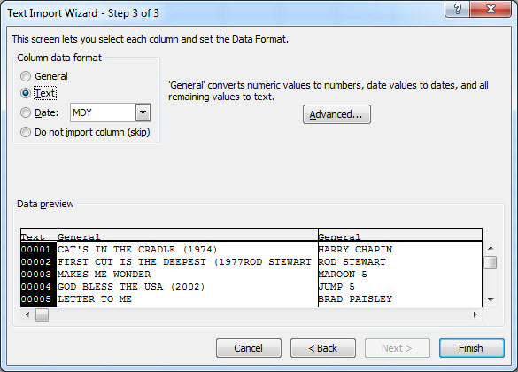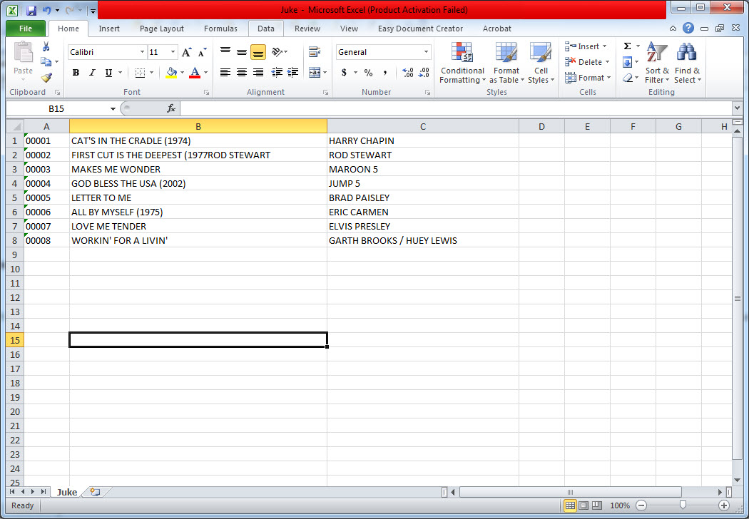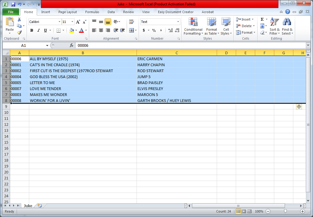 Press LoadText (7) and select a song list (text file) to fill in the titles and artist names.