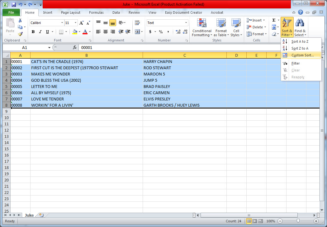 file by Title. Select all the songs in the file and click on Sort & Filter
