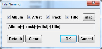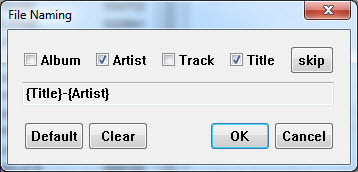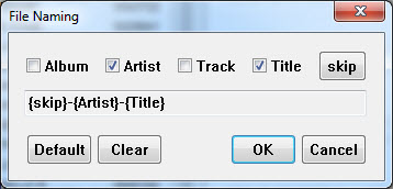 Note that the song files to which the Filenaming option will apply must first be selected.