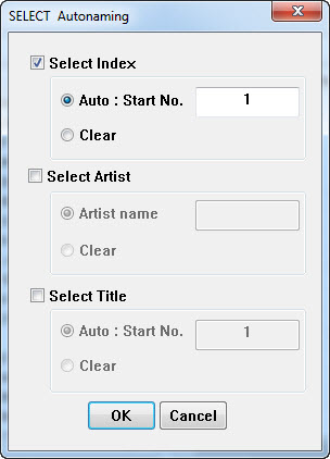 you wish to convert and transfer. Press INDEX-TITLE(10) and select Auto:Start No. and input 1. Click OK.
