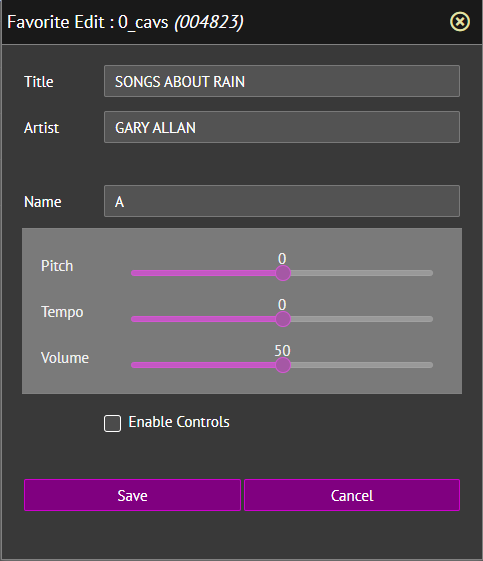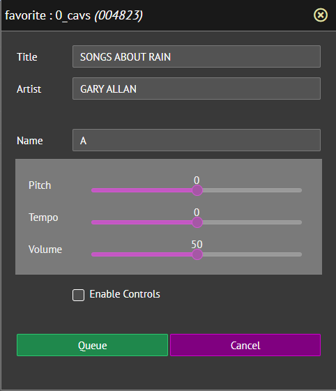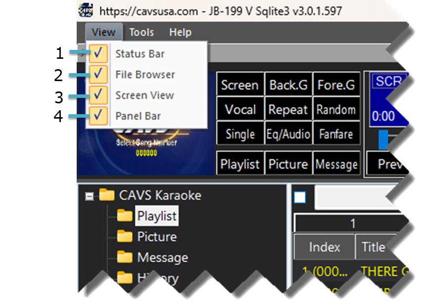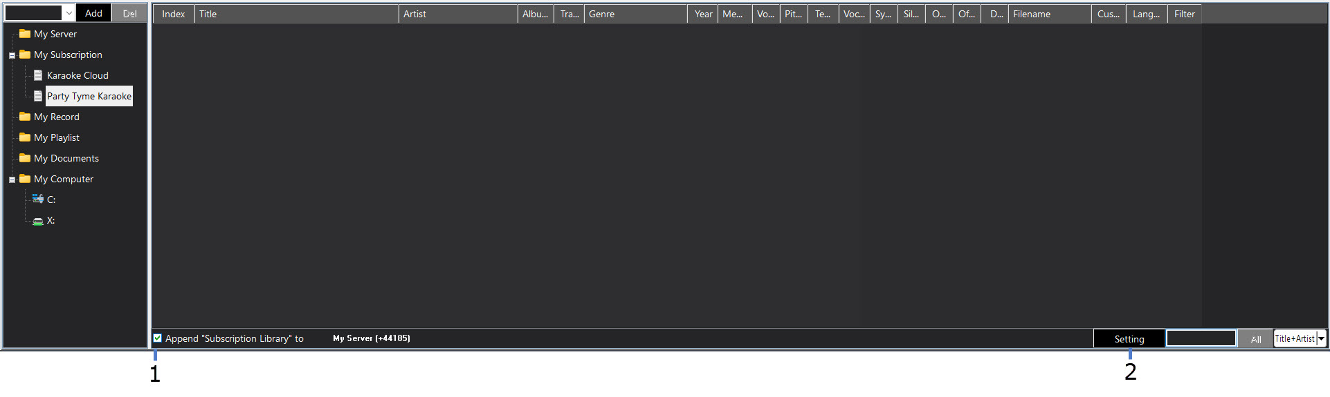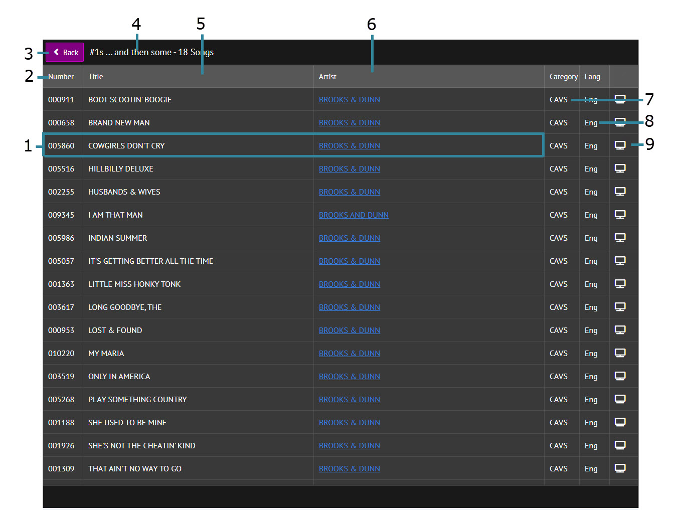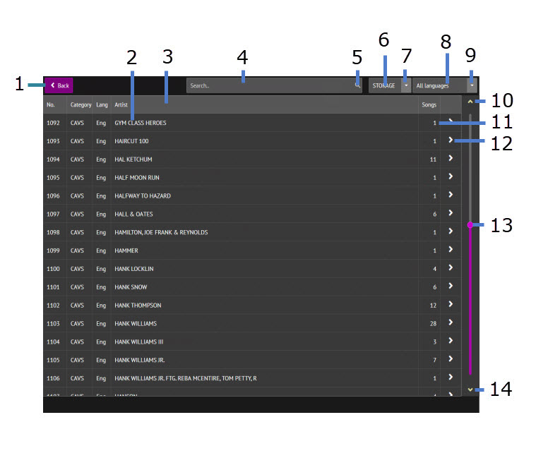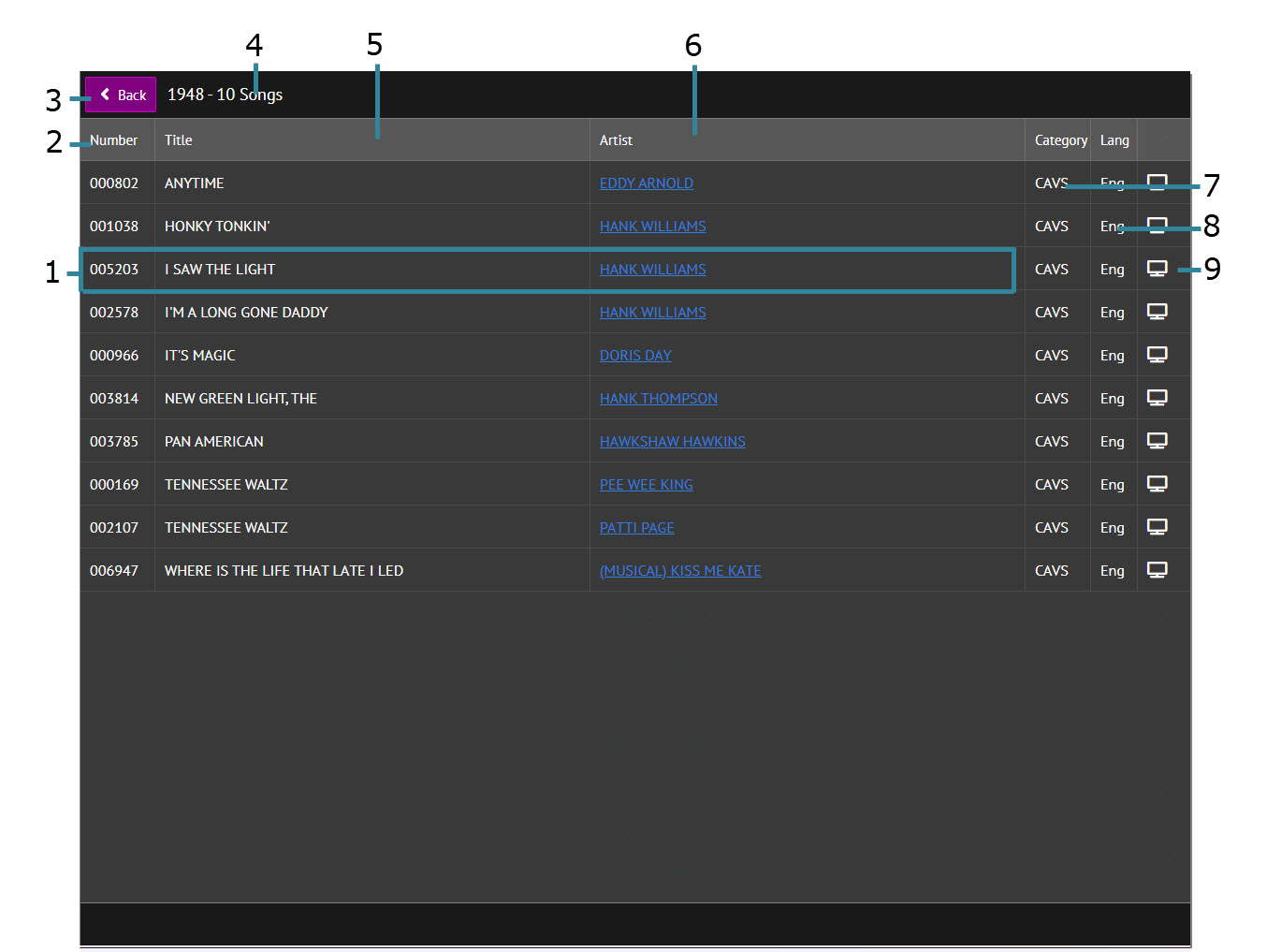 Press the Title to view, scroll, and search the songs by title. Following popup window will appear.