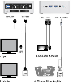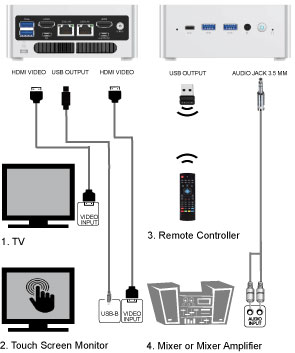 First is the video cable, HDMI or VGA, from the JB-199 V to the touch screen monitor.