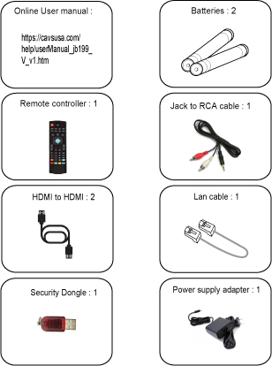 Second is the USB cable, connecting USB-B end to the touch screen monitor and USB-A end to the JB-199 V player.