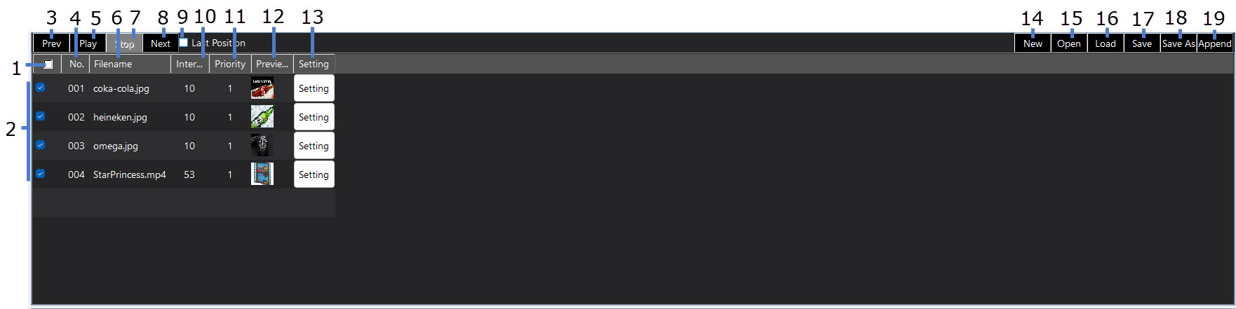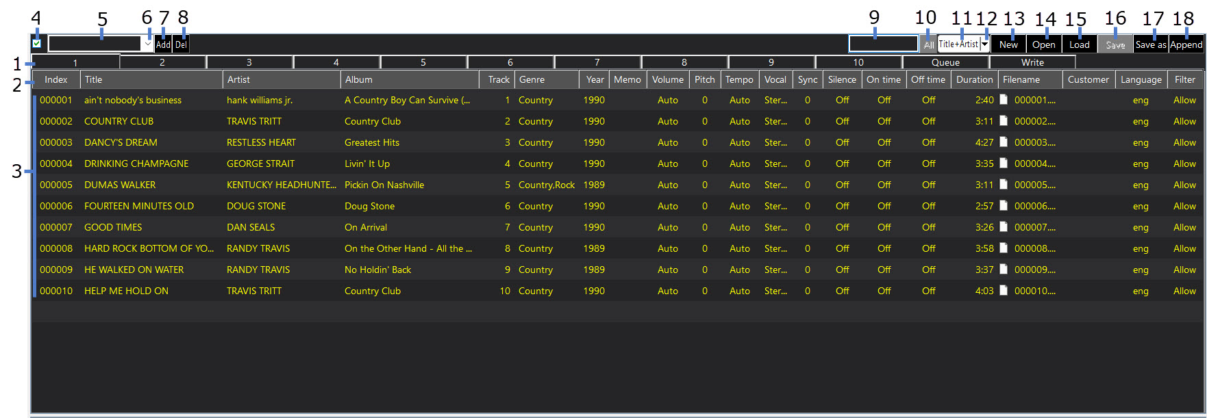 The playlist will appear with separate columns for Index, Title, Artist, Filename, etc. Adjust the width of each column for clear view of the divisions.