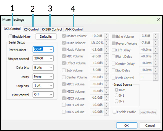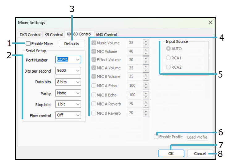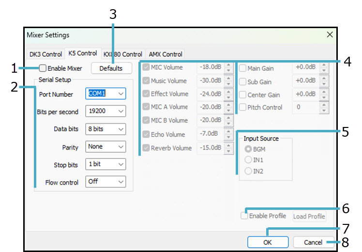 Next in the Mixer Settings window, check Enable Mixer and check the controls on the right side to be displayed in the Customer Interface. Click OK.
