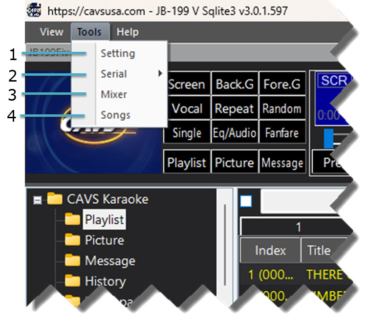 Next, in the Control Panel of the karaoke program, go to Tools > Mixer.