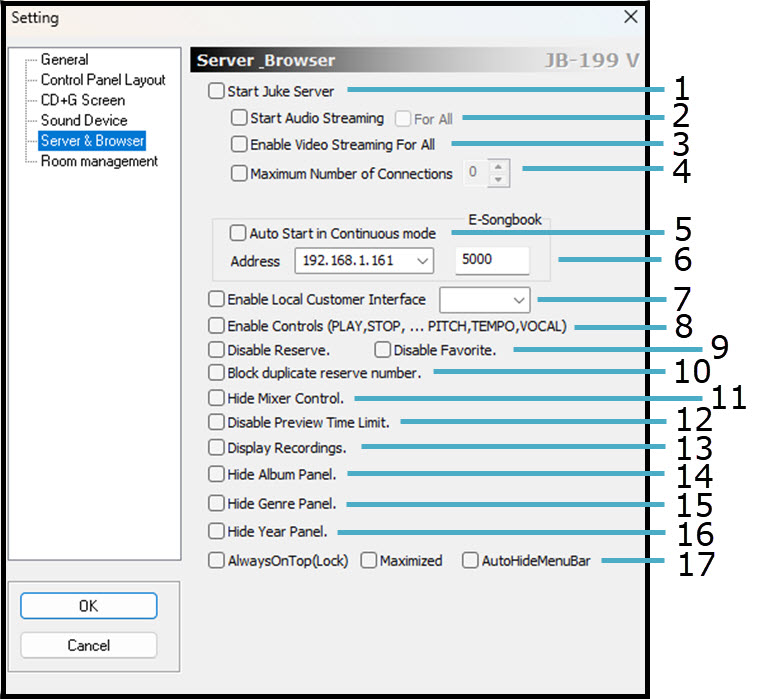 Start the JB-199 V and its server. Load the Master playlist with international songs into My Server. Go to the Customer Interface as an online guest or using an E-Songbook.